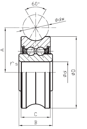 • outer ring with gothic arch groove profile